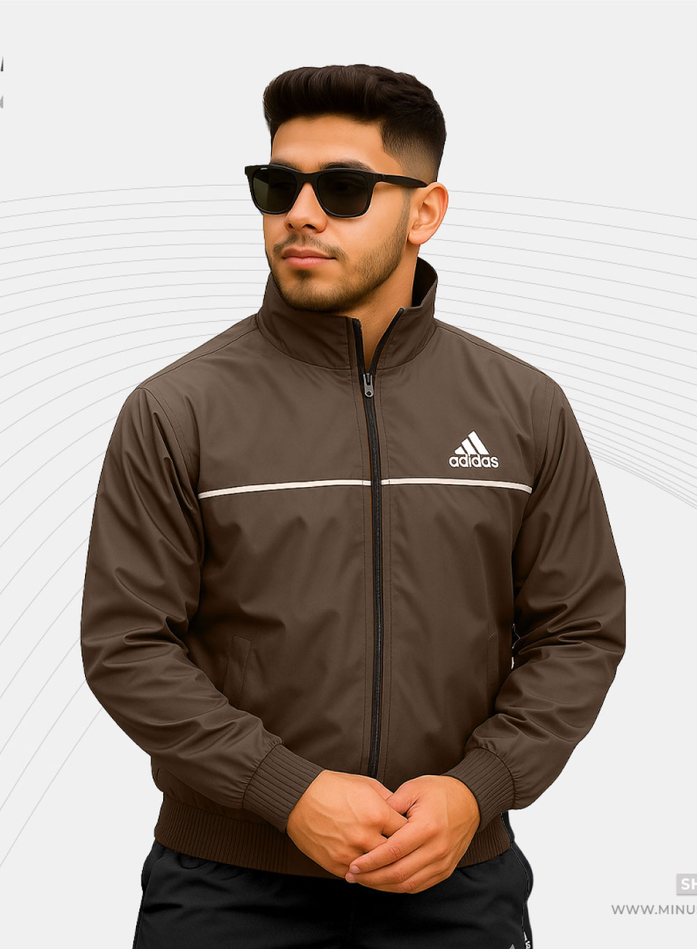 Adidas Biker coffee windbreaker featuring a sleek design and lightweight protection, ideal for biking and everyday wear.