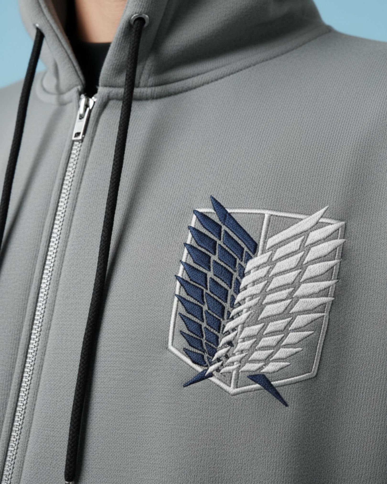 High-quality embroidered logo on the chest for a clean anime signature