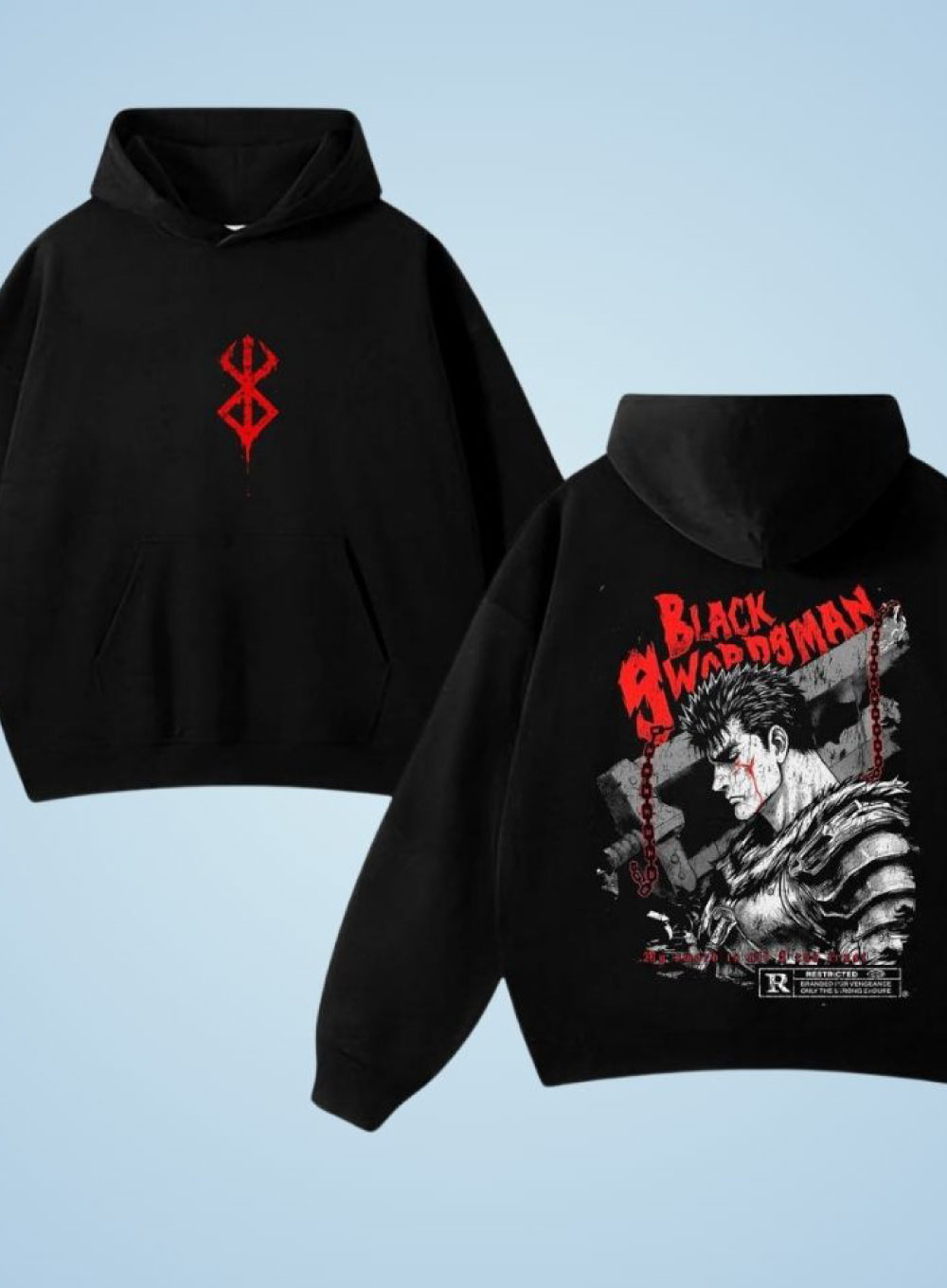 Clodio Berserk black hoodie featuring a bold graphic design and soft, comfortable fabric for everyday streetwear style.