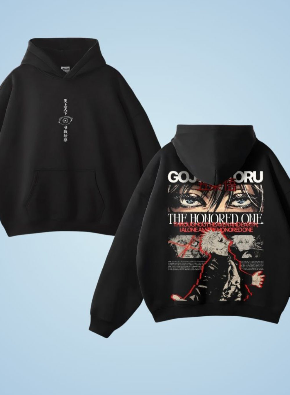 Clodio Gojo Satoru acid wash hoodie featuring a striking graphic design and soft, comfortable fabric for casual streetwear.