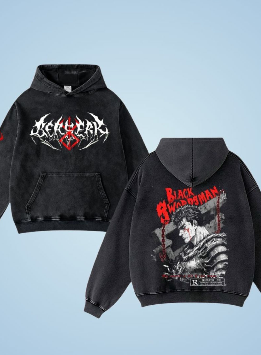 Clodio Guts acid wash black hoodie featuring a bold graphic design with a vintage finish and comfortable fabric for everyday streetwear.