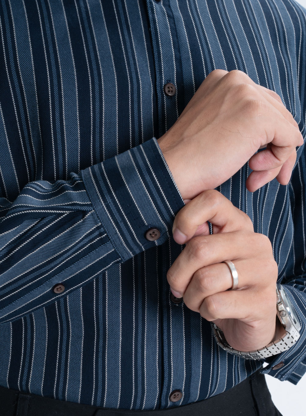 The ETERNA Navy Stripes Shirt adds bold character with its deep navy base and multi-toned stripes. Crafted for extra comfort and durability, this shirt balances breathability with elevated sophistication — ideal for smart-casual looks and confident evening wear.