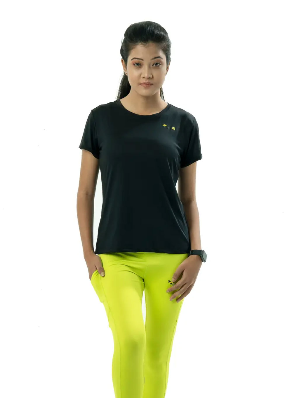 FF Women's Round Neck Polyester 0001 Black T-shirt is a perfect blend of style, comfort, and versatility. Made with a premium mix of 97% polyester and 3% spandex, this t-shirt offers excellent breathability, lightweight comfort, and a touch of stretch for optimal fit and mobility. The sleek black design makes it suitable for any occasion—whether it's a workout session, a casual outing, or everyday wear. Available in sizes from XS to XXL, this t-shirt ensures a flattering fit for every body type.