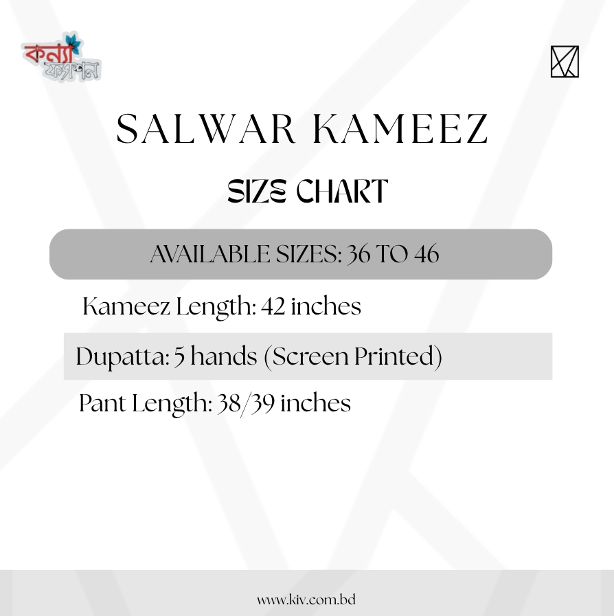 🔸 ওড়না: ৫ হাত লম্বা, স্ক্রীন প্রিন্ট করা – মানানসই ও আকর্ষণীয়।