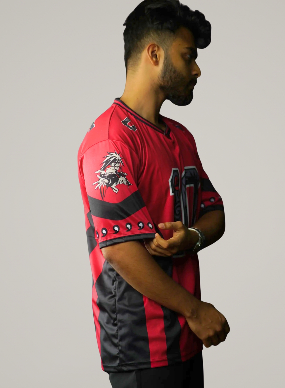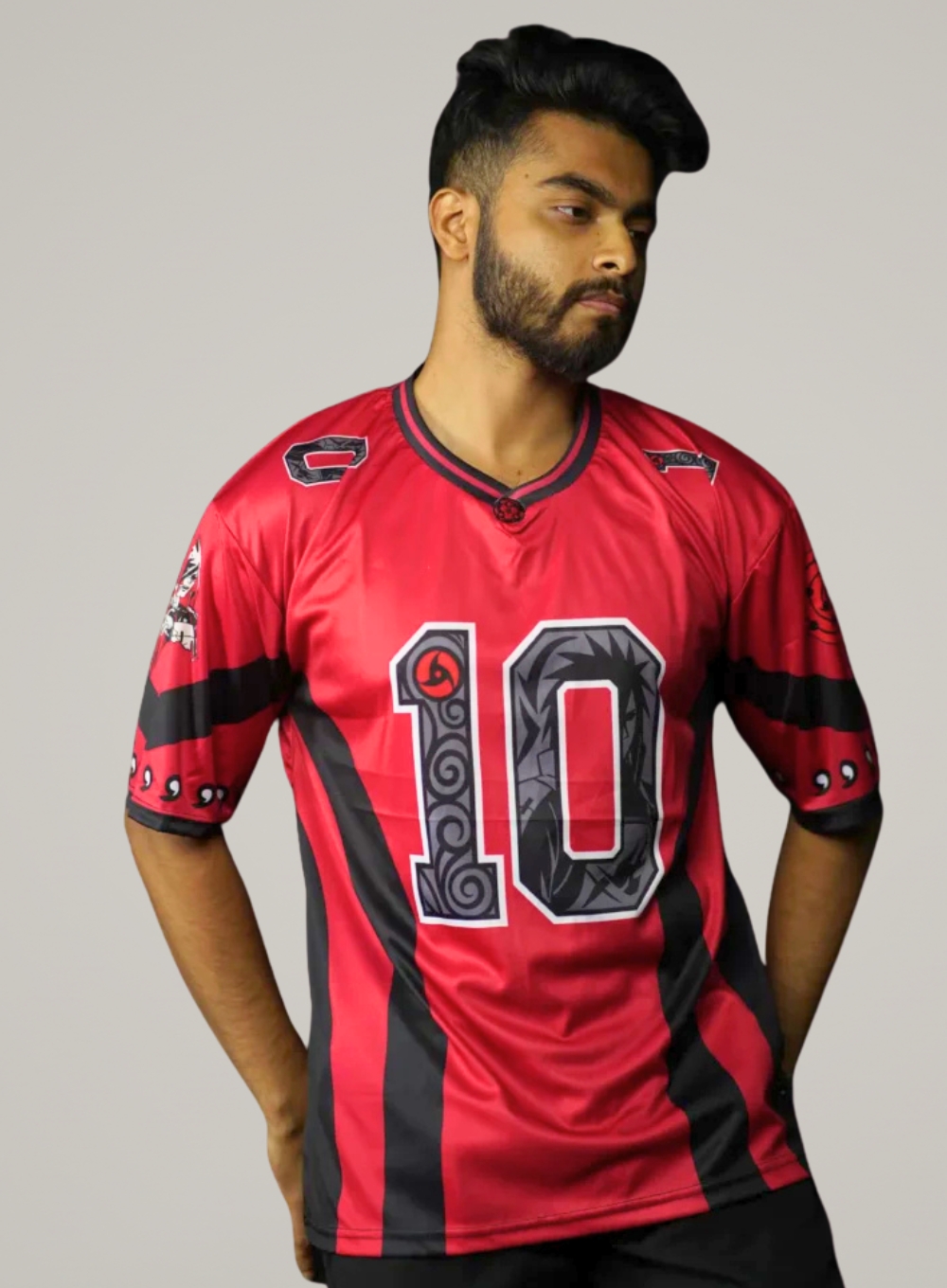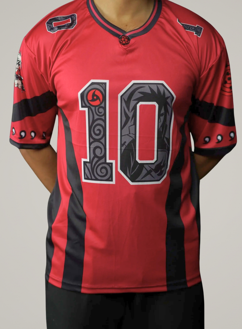 Step into the battlefield like the Ghost of the Uchiha with this Madara Uchiha Anime Jersey—crafted from premium breathable 170 GSM fabric featuring an oversized drop-shoulder fit, bold fade-resistant sublimation prints, exclusive embroidered Uchiha crest, and the iconic Number “10,” symbolizing the unstoppable power of the Ten-Tails.