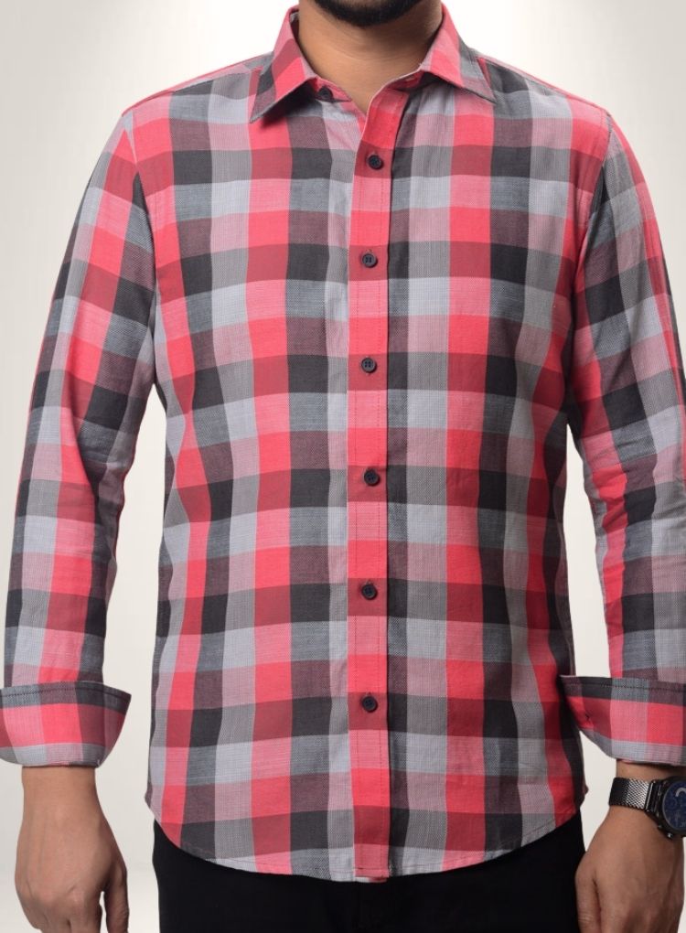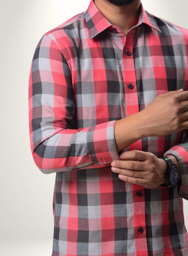 MLSS1055 Men's Formal Shirt Pink Black Ash Check Views : 30