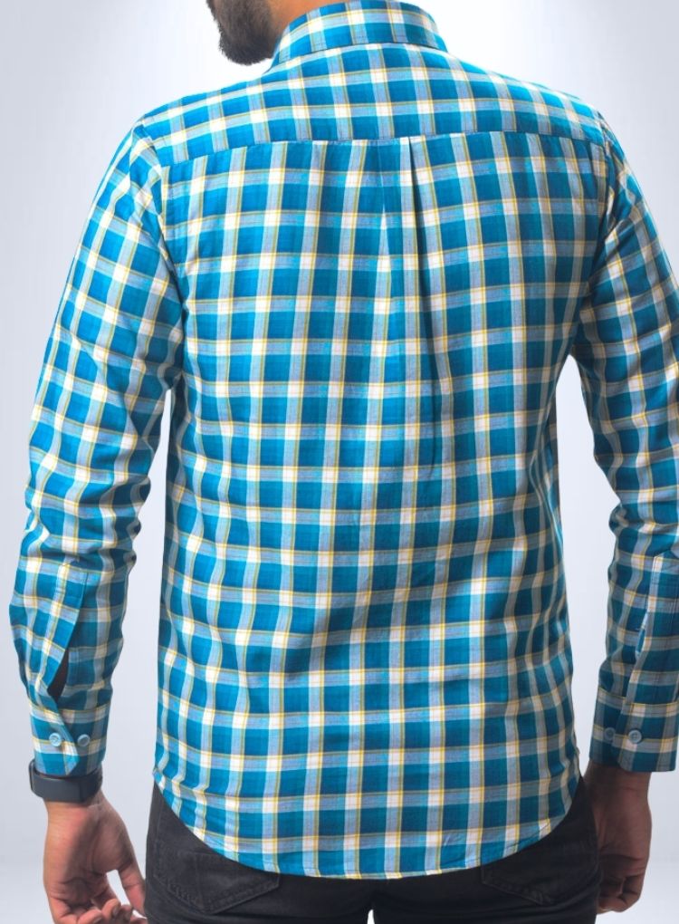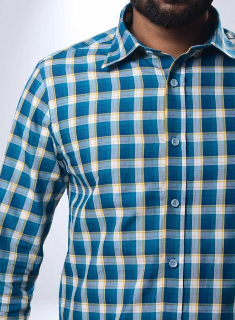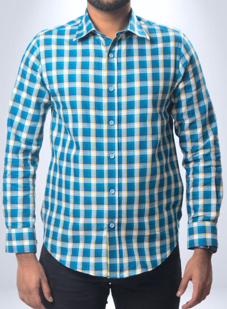 MLSS1056 Men's Formal Shirt Blue Yellow Check