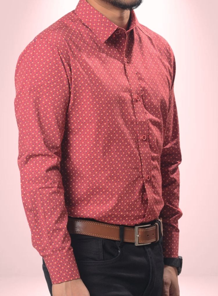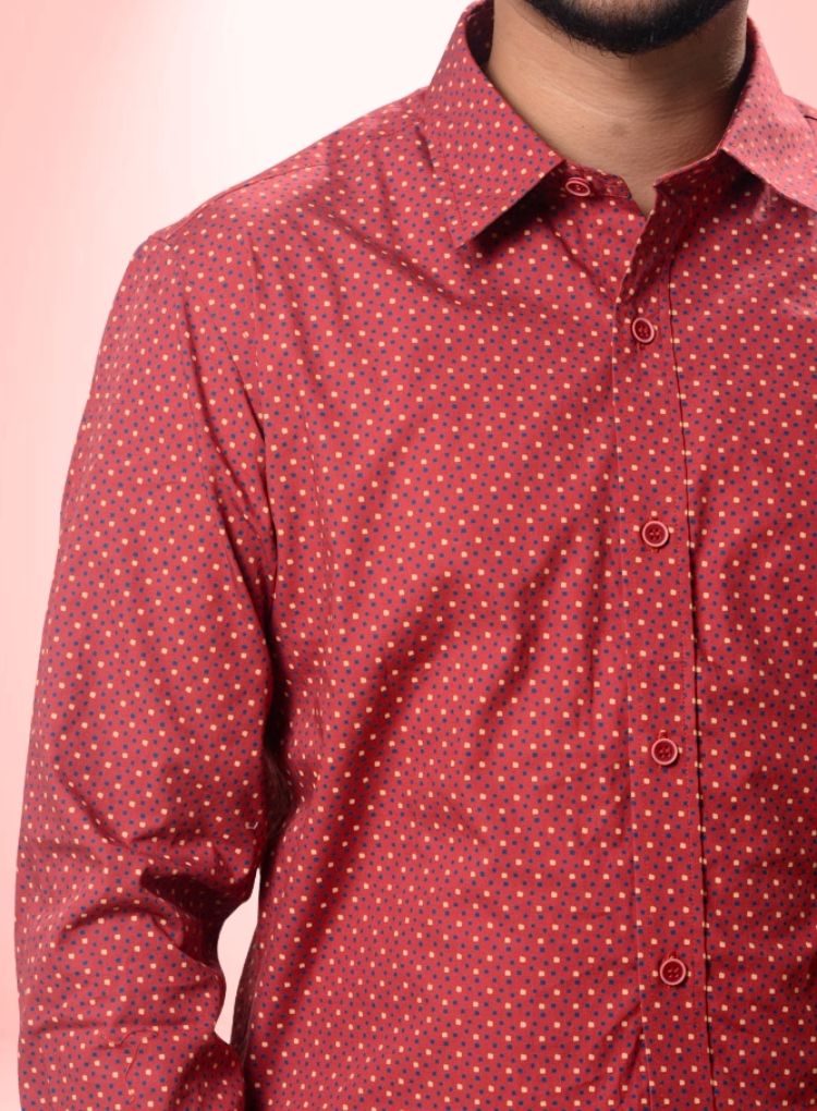MLSS901 Men's Formal Shirt Marron Print