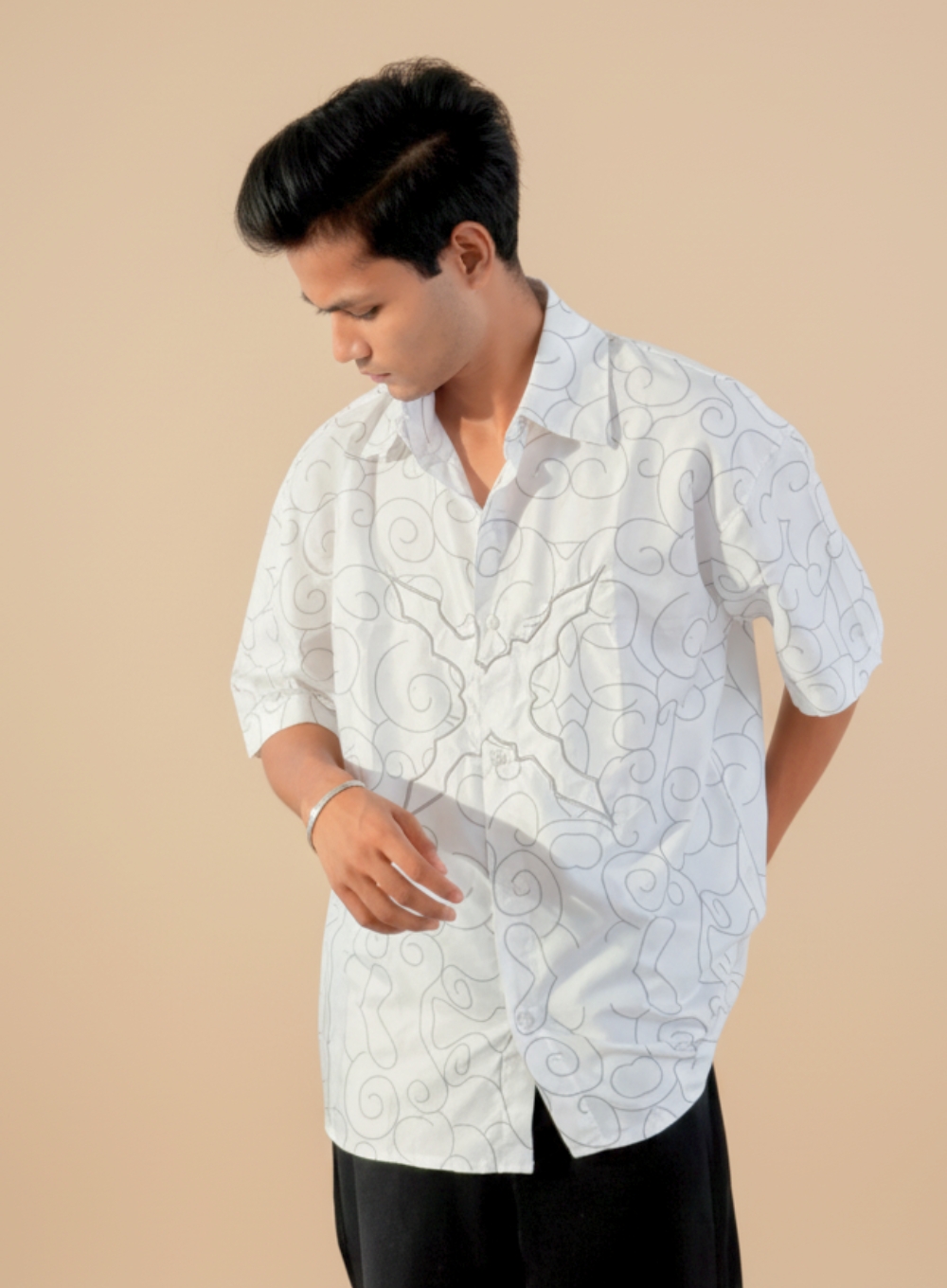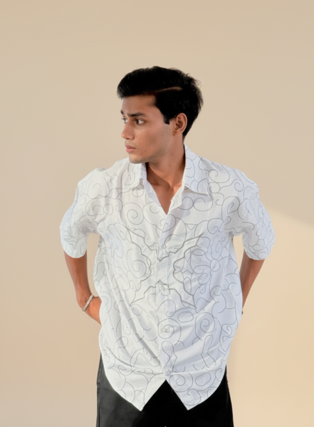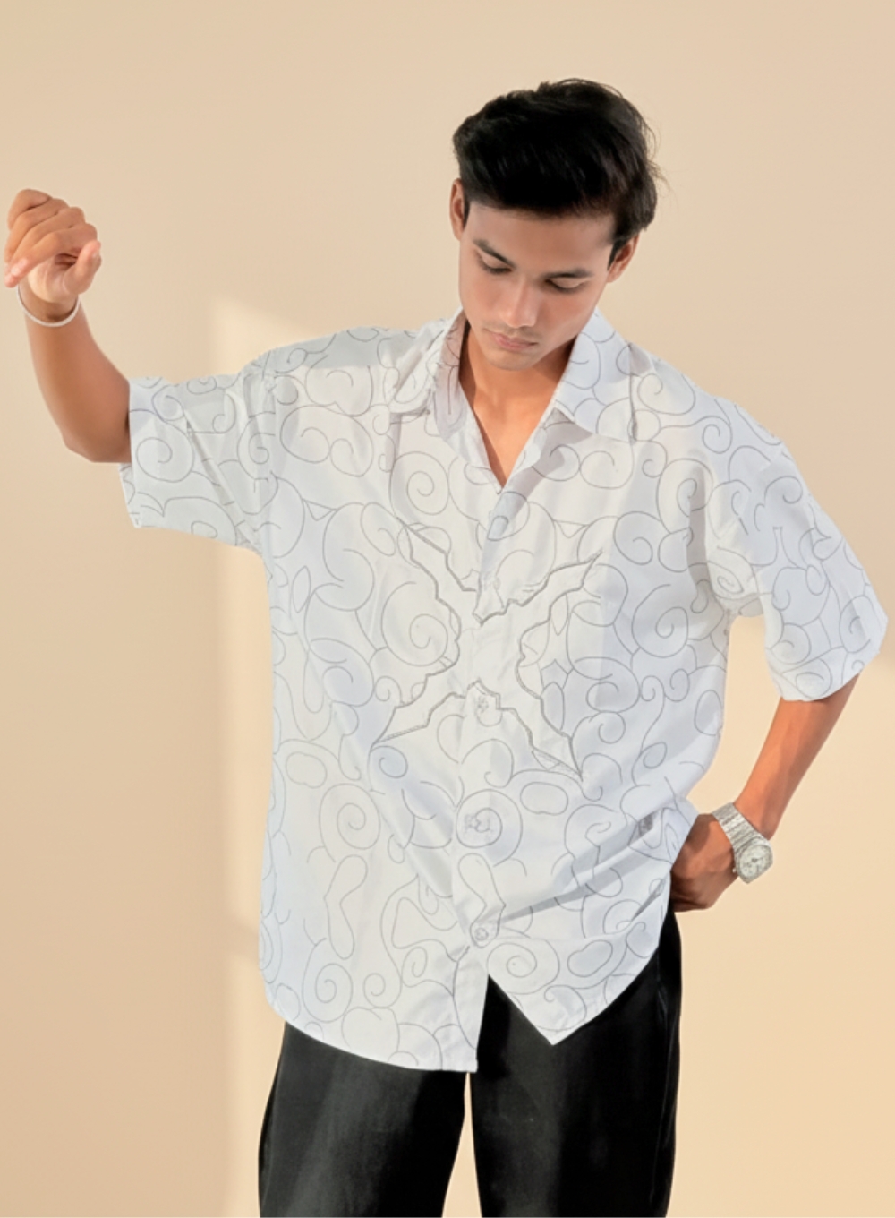 Crafted from a luxurious Indian silk-polyester blend, this shirt delivers the best of both worlds. The silk fibers give a soft, lustrous finish that catches the light with every move, while the polyester fibers provide strength, durability, and flexibility. The result? A shirt that is lightweight, breathable, and built for all-day comfort, without ever losing its premium streetwear edge.