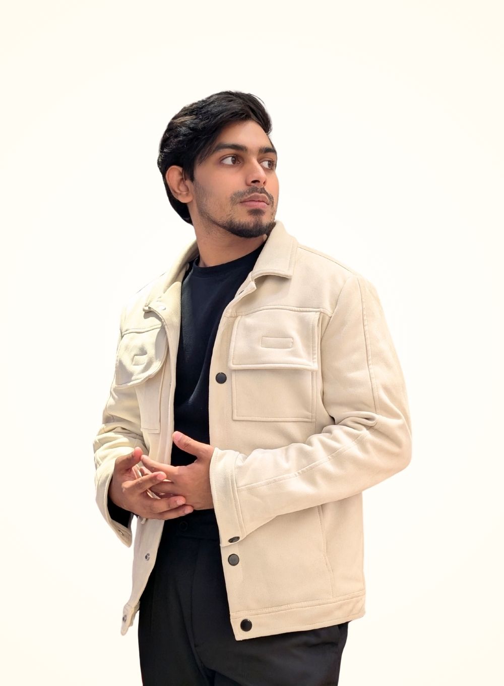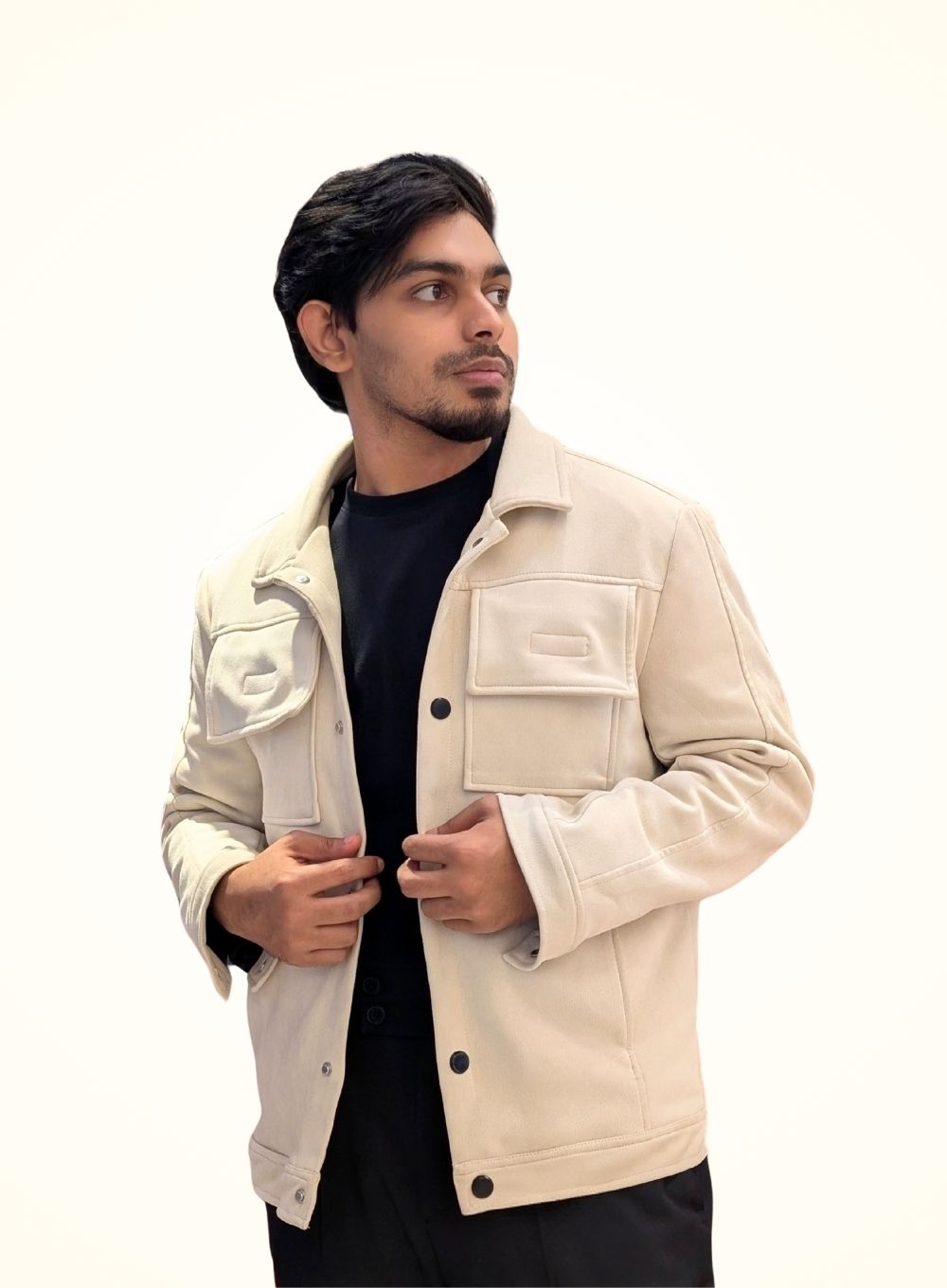 Stylish light beige winter jacket crafted from imported Panteroma fabric (230 gsm) for a soft yet durable feel. Offers excellent warmth, comfort, and a refined look—perfect for cool-weather layering.